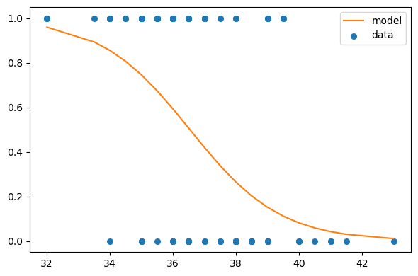 ks = agg_data['sum'] # represents successes, which means Victoria regionPeople get confused, rightfully, when they hear logistic regression getting mentioned as a linear model since all they see is an S-shaped function in a classic graph where x-axis represents the predictor and y-axis represents the probability. But that squiggle is a result of a transformation of log odds into probabilities. You may have deduced that before if you have taken a look at the equation: